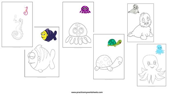 In this blog, I have added the aquatic animal theme. You can download these 7 pages in pdf format. The pages are in the copy-color format so that the kids love to color them. It’s perfect for the above 4 years kids.