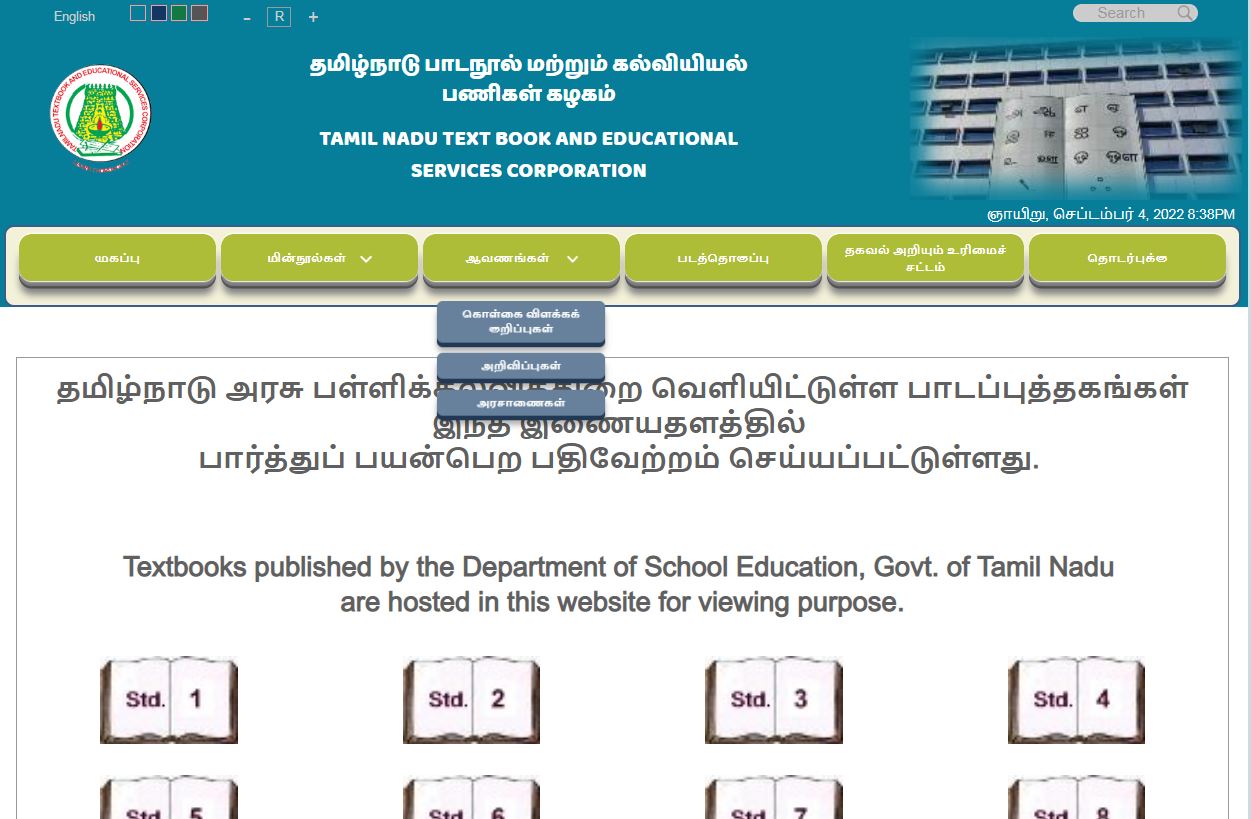 This is our Tamilnadu textbook and educational services corporation website. Textbooks published by the Department of School Education, Govt. of Tamil Nadu are hosted on this website for viewing purposes. You can download textbooks in pdf format from standard 1 to 12.