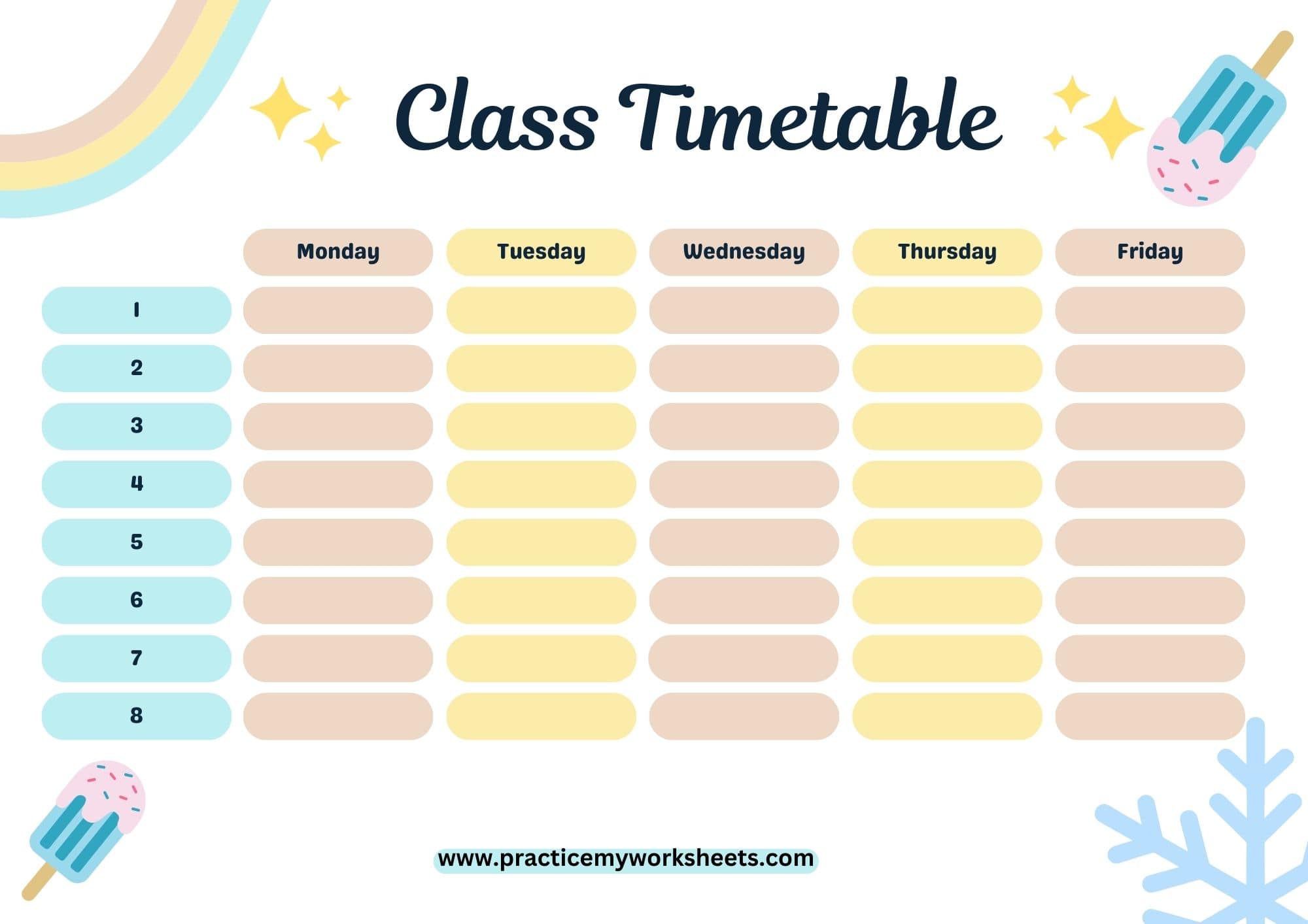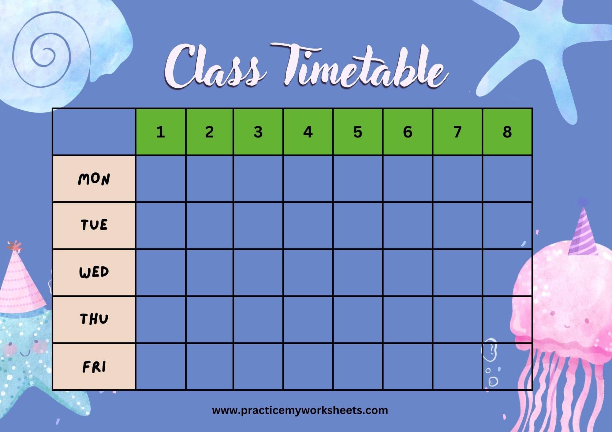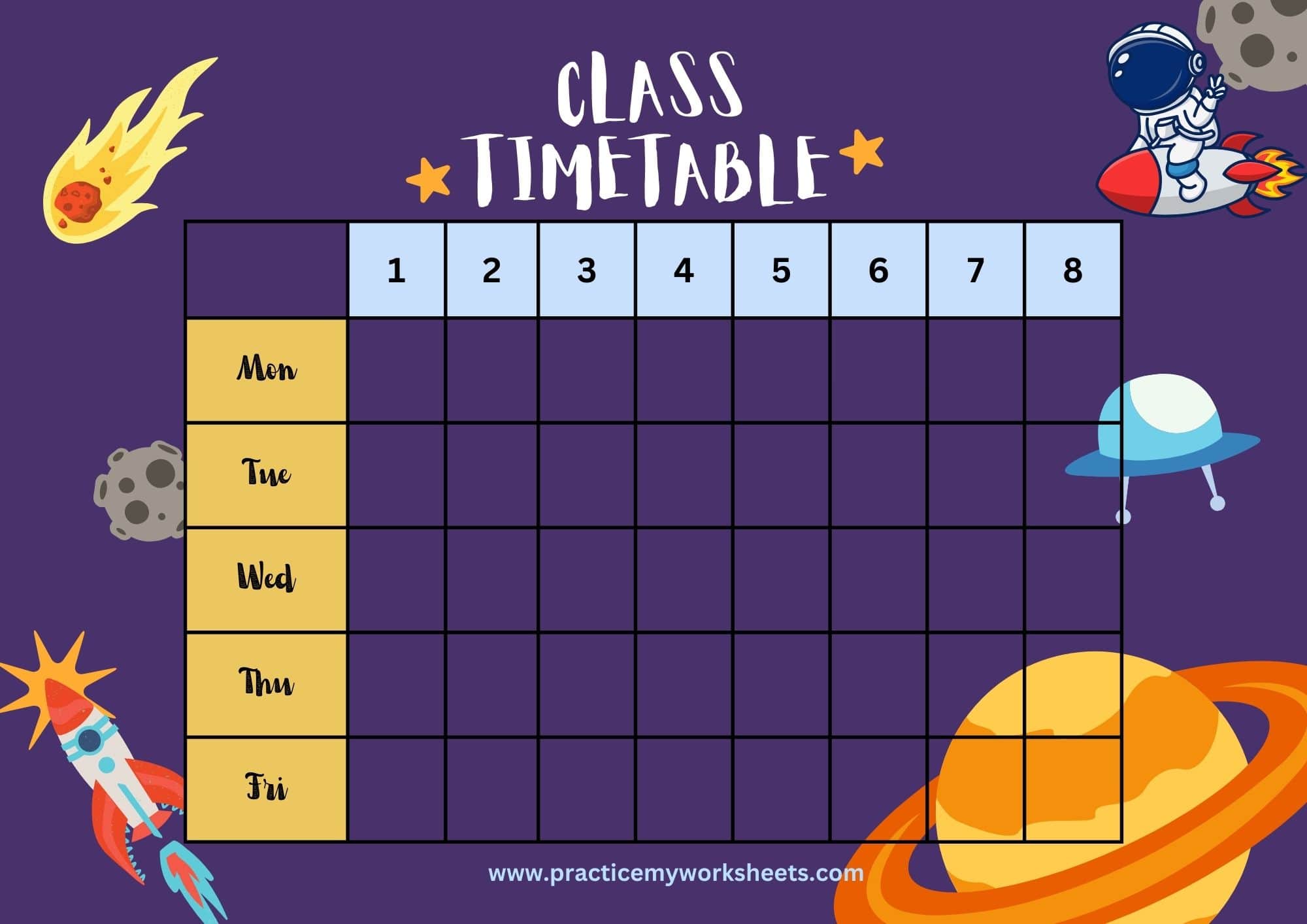Timetable is the first thing kids receive in their school. A well-structured timetable is an essential tool for managing your time effectively, balancing academic responsibilities, extracurricular activities, and personal commitments. Here are some of the timetable template to organize your kids desk. Stick them on your kids desk or room for a quick look.