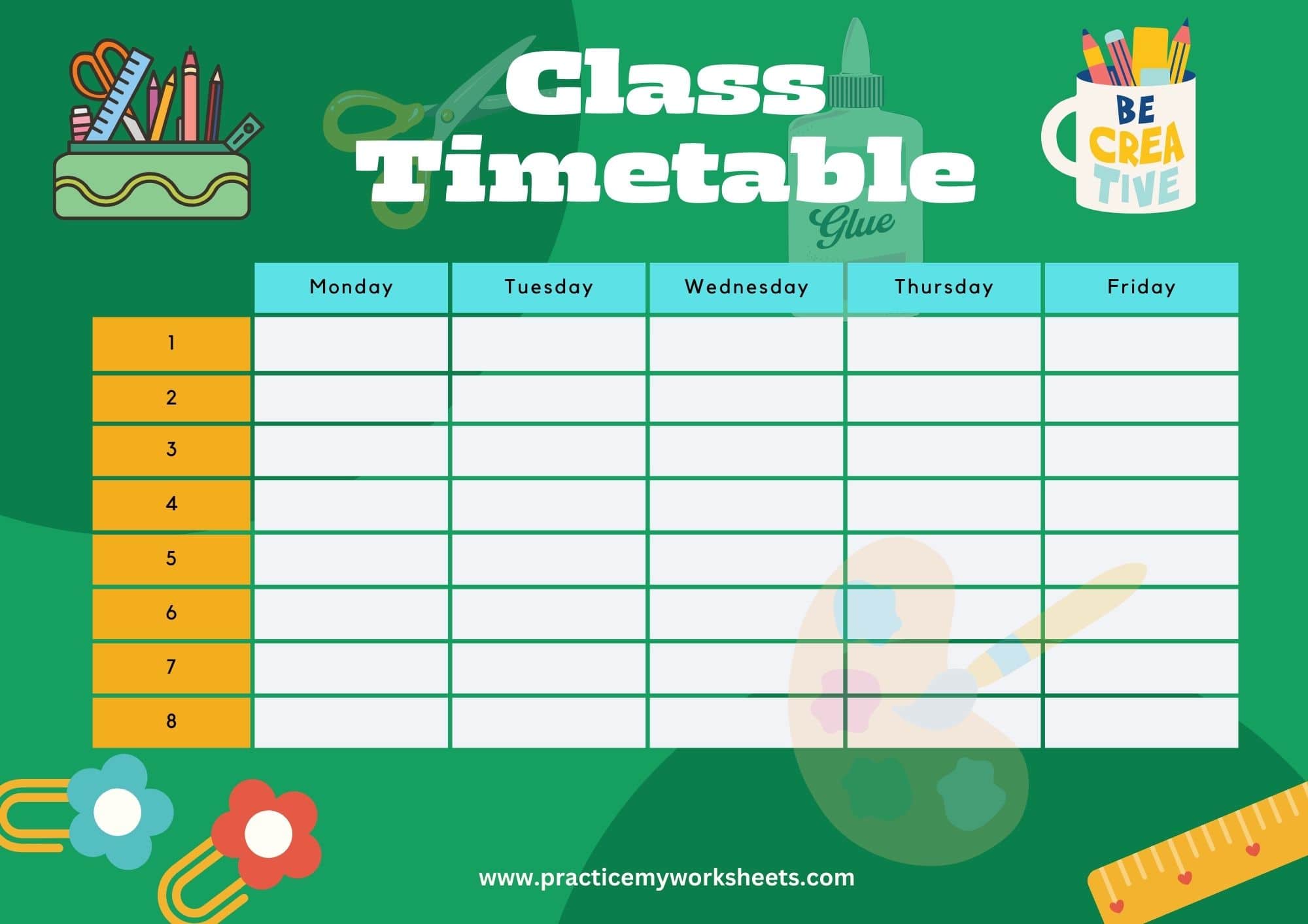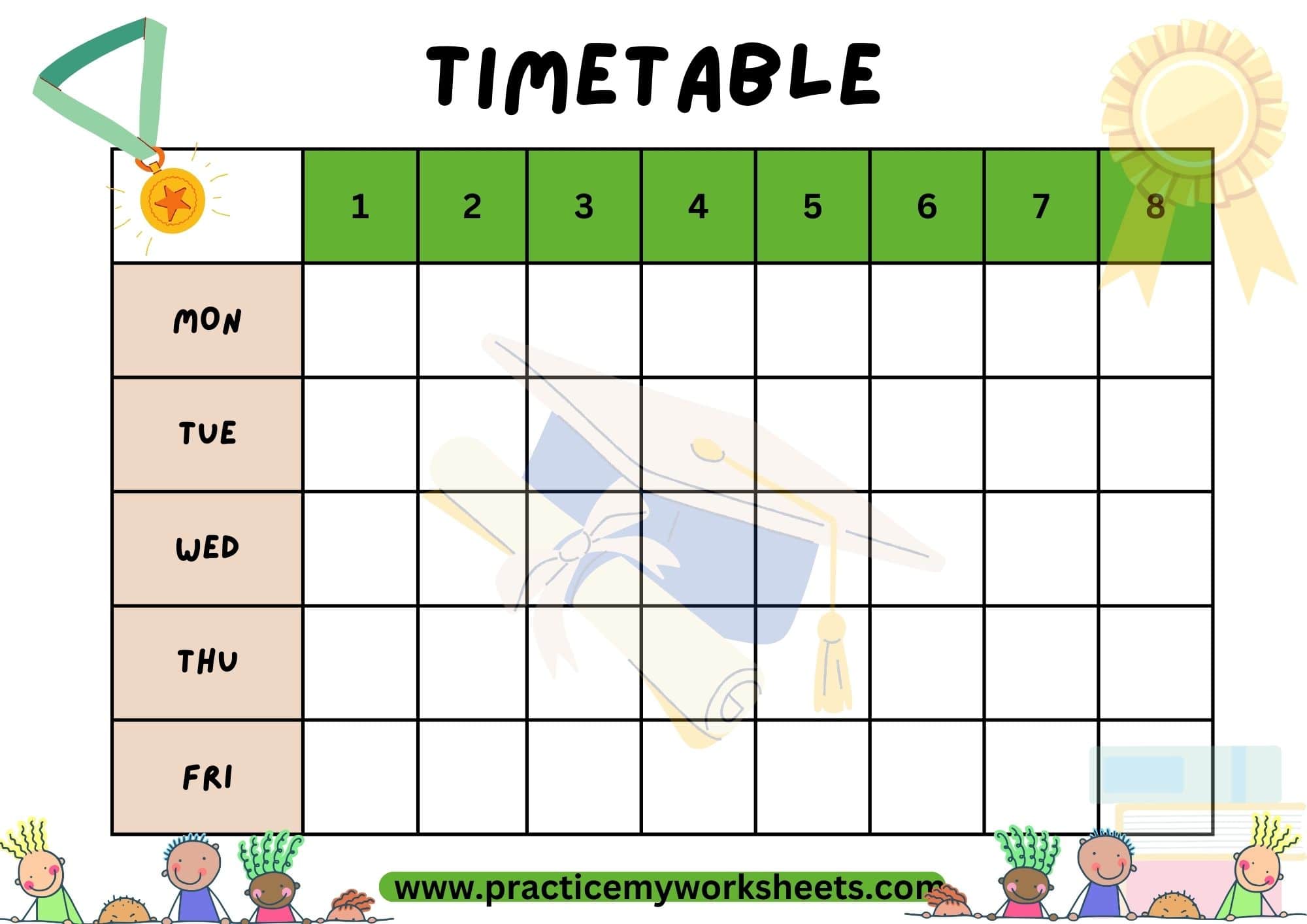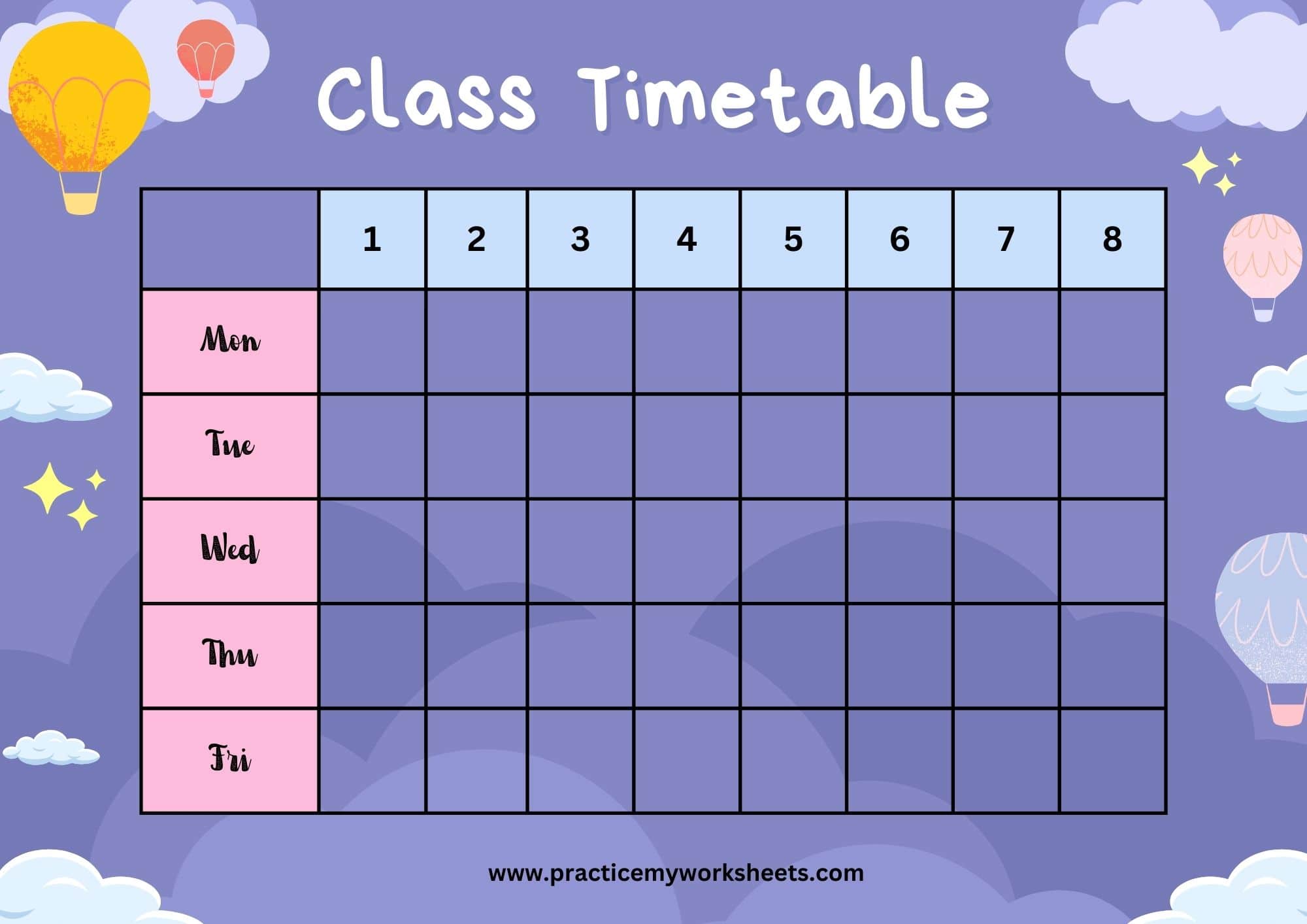 Timetable is the first thing kids receive in their school. A well-structured timetable is an essential tool for managing your time effectively, balancing academic responsibilities, extracurricular activities, and personal commitments. Here are some of the timetable template to organize your kids desk. Stick them on your kids desk or room for a quick look.