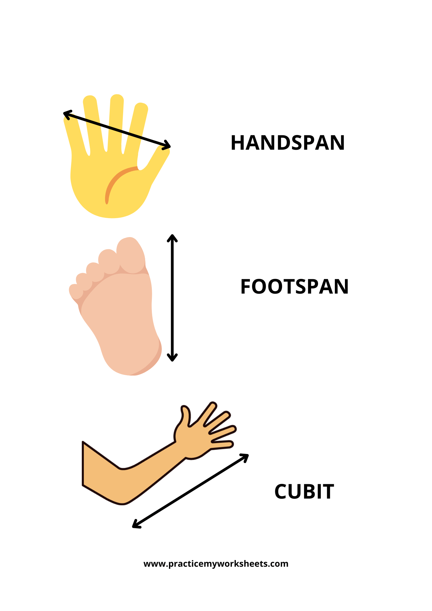 Teaching measurement for class1 helps them to analyze the objects around them. In the early days, people used different parts of the body to measure length. They are called non-standard measures of length. Some non-standard measures of length are handspan, cubit, foot span, and pace or stride.