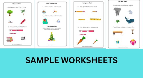 Pre-number concepts are important concepts for kids. These are the basic fundamental concepts for their daily life. These pre-number concepts are not only covered in maths but also in all subjects. From this concept, kids can sort and differentiate the objects around them. All these concepts are covered in our worksheets with colorful pictures. The Pre-number concepts covered are,