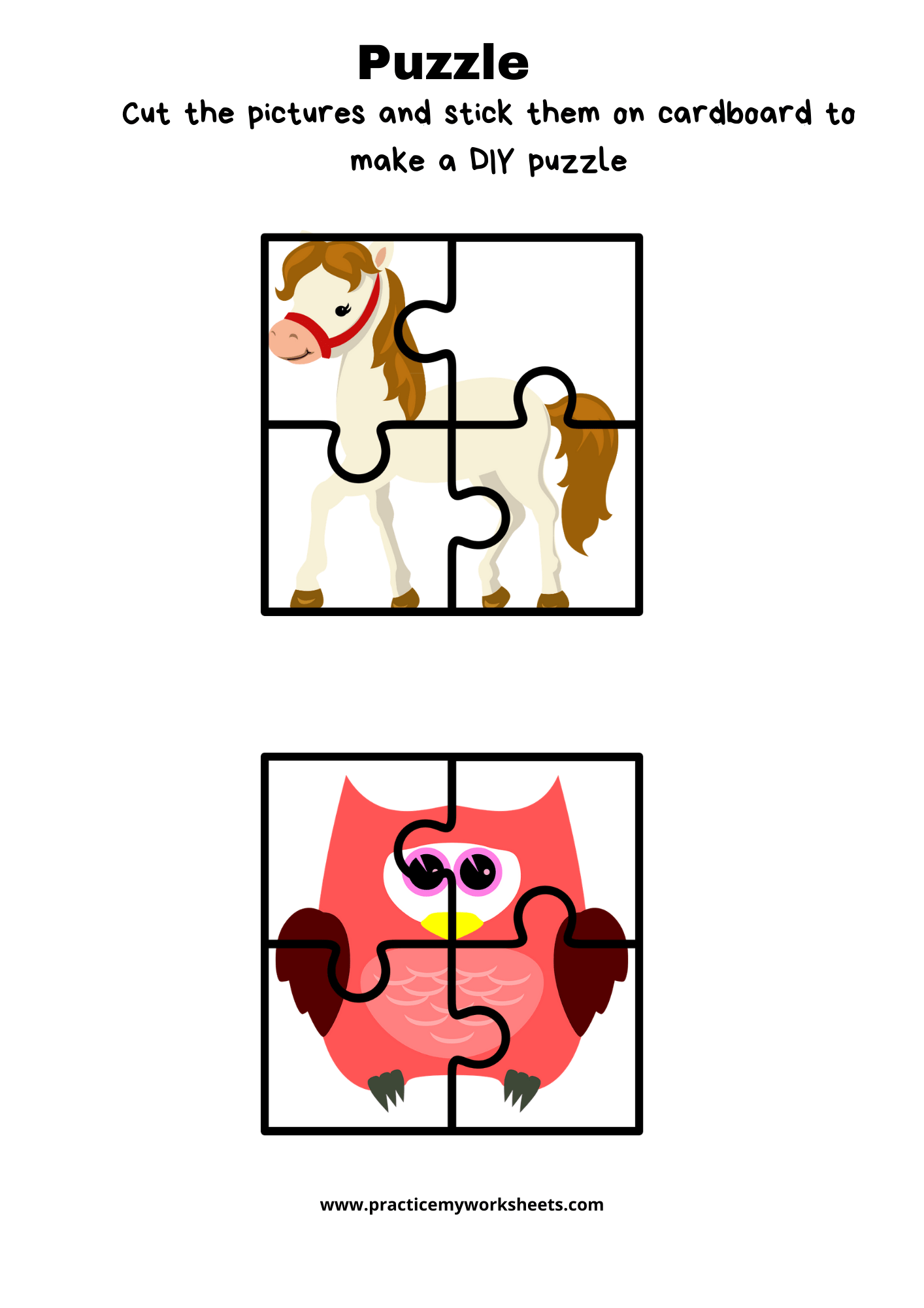 Making a DIY puzzle is a cost-effective way. We can create our own theme. Check the download worksheet for free printable animal theme pictures. This free printable will be perfect for a 3-4 year kid who loves animals.