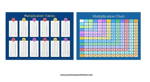 Free printables of Multiplication Tables and charts are provided so the kids can practice daily. You can stick these worksheets near your kid’s study area so they can learn whenever they see them. It’s very colorful so that the kids get attracted to them.