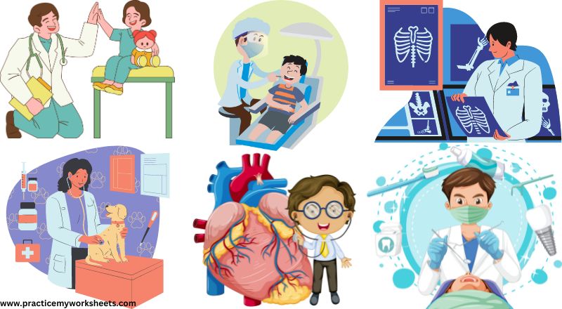 - Pediatrician: Pediatricians are doctors who specialize in taking care of babies, children, and teenagers. They help keep kids healthy by giving check-ups, vaccinations, and treating illnesses.
